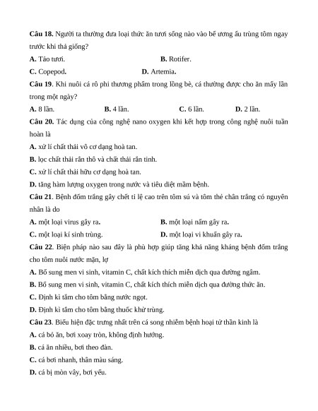 Câu 17. Ao nuôi thuỷ sản thường có hình dạng như thế nào? A. Hình chữ nhật. B. Hình tròn. C. Hình vuông.