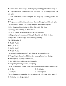 Câu 8. Bảo vệ tài nguyên rừng cần tập trung vào một số biện pháp sau: