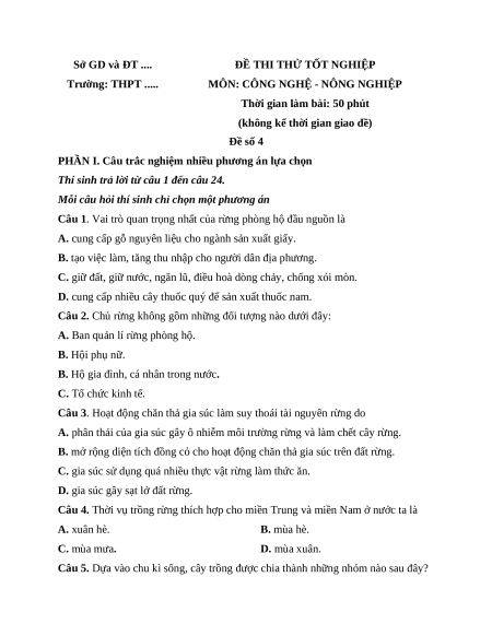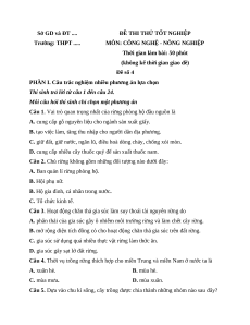 Đề ôn thi Tốt nghiệp Công nghệ (Định hướng Nông nghiệp) - Đề 4