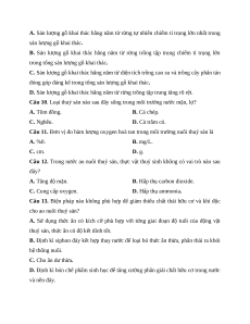 Câu 12. Trong nước ao nuôi thuỷ sản, thực vật thuỷ sinh không có vai trò nào sau đây? A. Tăng độ mặn.