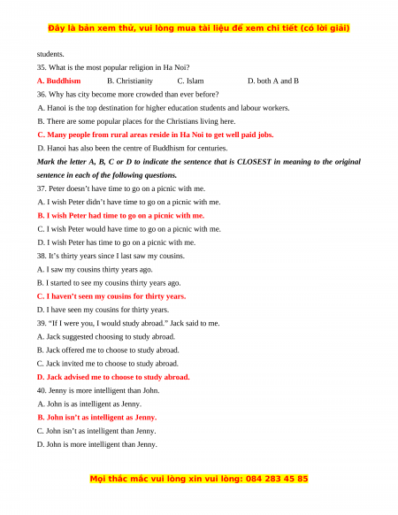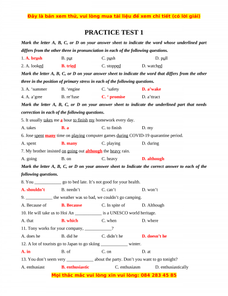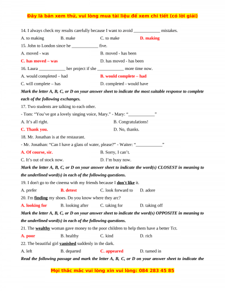 Chúng tôi đảm bảo đủ số lượng đề đã cam kết hoặc có thể nhiều hơn, tất cả có BẢN WORD, LỜI GIẢI CHI TIẾT và tải về dễ dàng.