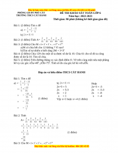 Đề thi chọn HSG cấp Trường môn Toán 6 năm 2022 - 2023 - THCS Cát Hanh có đáp án