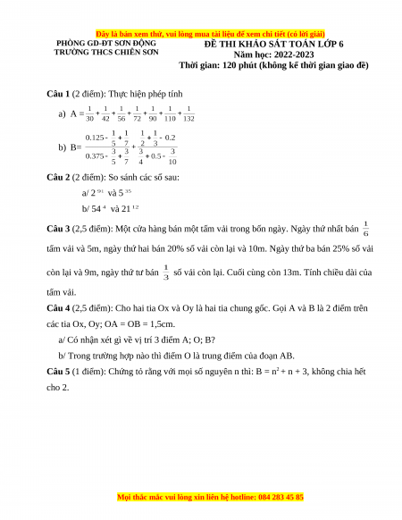 ĐỀ THI KHẢO SÁT TOÁN LỚP 6