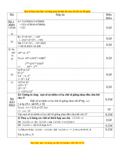 1) Chứng tỏ rằng mọi số tự nhiên có ba chữ số giống nhau đều chia hết Bài cho 37 0,25đ 2(4,5