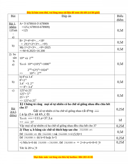 2) So sánh: a) 10³º và 2100 ; b) 85và 3.47 ; c) 1255và 257 B ài 2(4,5 đ i ểm)