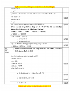 Vậy a có thể nhận những giá trị nào trong các giá trị sau: 0,75đ a = 2002; a = 22789; a = 29563 Bài