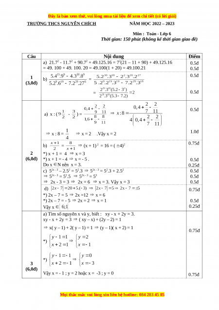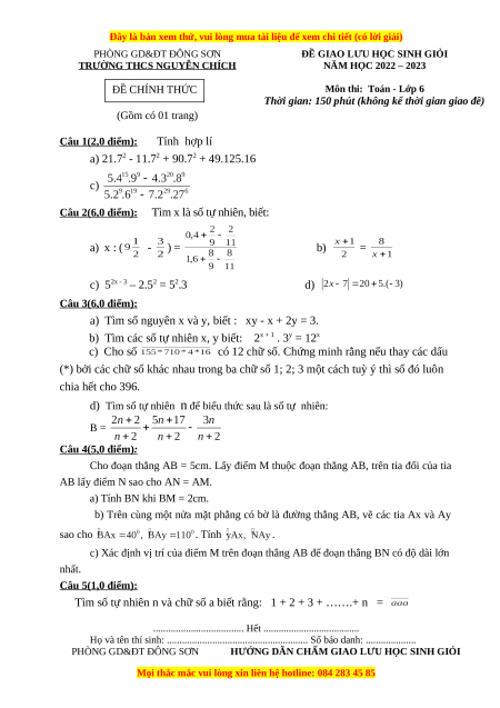 Đề thi chọn HSG cấp Trường môn Toán 6 năm 2022 - 2023 - THCS Nguyễn Chích có đáp án