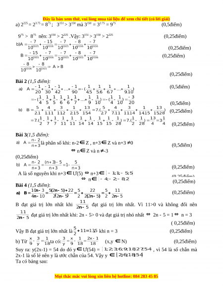 Bài 1 (1,5 điểm): a) So sánh: 2225 và 3151