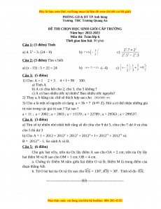 Đề thi chọn HSG cấp Trường môn Toán 6 năm 2022 - 2023 - THCS Trương Quang An có đáp án