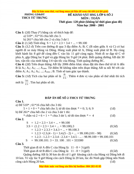 ĐỀ KHẢO SÁT HSG LỚP 6-SỐ 2 THCS TỨ TRƯNG MÔN : TOÁN