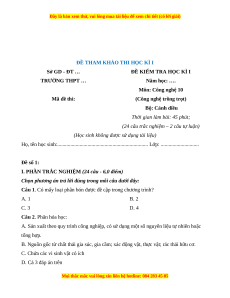 ĐỀ KIỂM TRA HỌC KÌ I TRƯỜNG THPT … Năm học: …. Môn: Công nghệ 10 Mã đề thi: