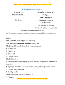 ĐỀ KIỂM TRA HỌC KÌ I TRƯỜNG THPT … Năm học: …. Môn: Công nghệ 10 Mã đề thi:
