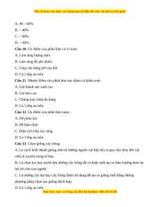 Câu 12. Ưu điểm của phân bón nano: A. Dễ phân tán B. Dễ bám dính