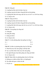 Câu 16. Có loại giống cây trồng nào? A. Giống gốc B. Giống đối chứng C. Giống ưu thế lai D. Cả 3 đáp án trên