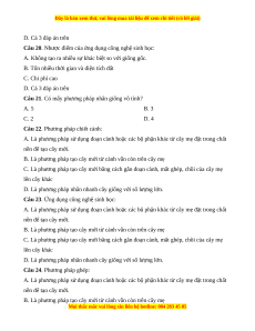 Câu 17. Có mấy phương pháp chọn giống cây trồng ? A. 1 B. 2 C. 3 D. 4