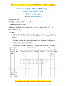 MA TRẬN, BẢN ĐẶC TẢ ĐỀ KIỂM TRA HỌC KÌ I