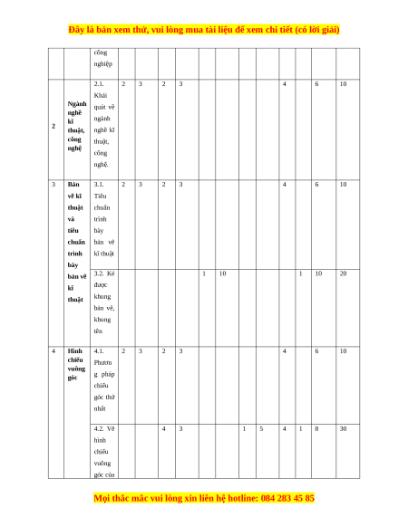 công nghiệp 2.1. 2 3 2 3 4 6 10 Khái Ngành quát về nghề kĩ ngành 2 thuật, nghề kĩ công thuật, nghệ công nghệ. 3 Bản 3.1. 2 3 2 3 4 6 10 vẽ kĩ Tiêu thuật chuẩn và trình tiêu bày chuẩn bản vẽ trình kĩ thuật bày bản vẽ 3.2. Kẻ 1 10 1 10 20 kĩ được thuật khung bản vẽ, khung tên 4 Hình 4.1. 2 3 2 3 4 6 10 chiếu Phươn vuông góc g pháp chiếu góc thứ nhất 4.2. Vẽ 4 3 1 5 4 1 8 30 hình chiếu vuông góc của