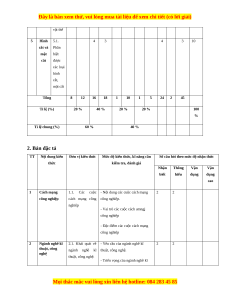 Mức độ nhận thức Tổng % T dung kiến tổng kiến thức Nhận biết Thông hiểu Vận dụng Vận dụng Số CH Thời điểm thức cao gian (phút ) Số Thời Số Thời Số Thời Số Thời T T C gian C gian C gian C gian N L H (phút H (phút H (phút H (phút ) ) ) ) 1 Cách 1.1. 2 3 2 3 4 6 10 mạng Các công cuộc nghiệ cách p mạng