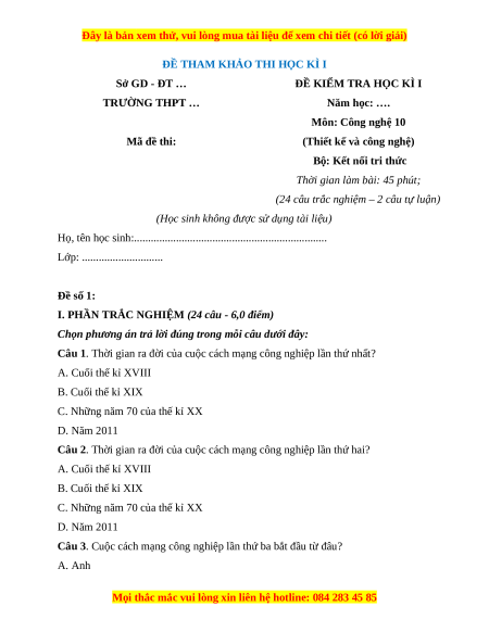 TÀI LIỆU BỘ BÁN CHẠY MÔN Công Nghệ