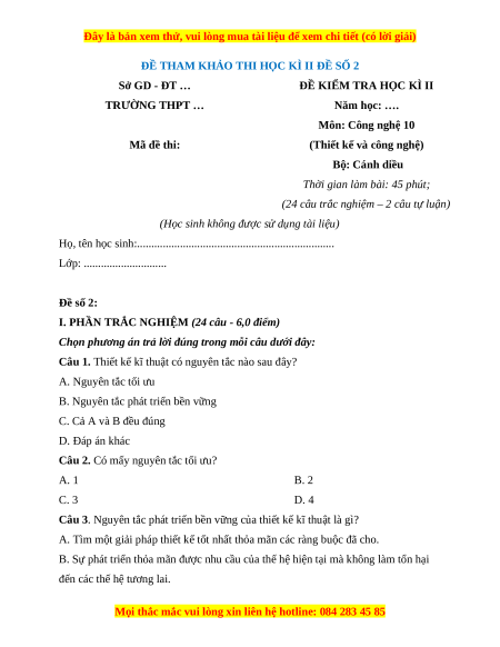 - Tailieugiaovien.com.vn giới thiệu bộ đề cuối kì 2 gồm đầy đủ ma trận và lời giải chi tiết môn Công ngệ Thiết kế 10 Cánh diều mới nhất năm 2023 - 2024 nhằm giúp Giáo viên có thêm tài liệu tham khảo ra đề thi Công nghệ lớp 10.