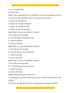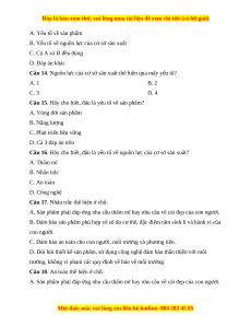 Câu 15. Hãy cho biết, đâu là yếu tố về sản phẩm? A. Vòng đời sản phẩm B. Năng lượng C. Phát triển bền vững D. Cả 3 đáp án trên