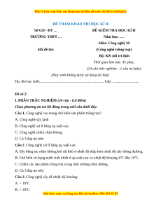 ĐỀ KIỂM TRA HỌC KÌ II TRƯỜNG THPT … Năm học: …. Môn: Công nghệ 10 Mã đề thi:
