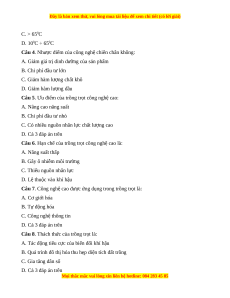 Câu 3. Công nghệ sấy để nhiệt độ khoảng: