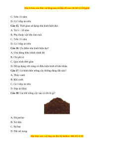 Câu 14. Thời gian sử dụng nhà kính đơn giản: A. Từ 5 – 10 năm