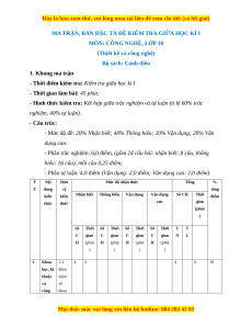 MA TRẬN, BẢN ĐẶC TẢ ĐỀ KIỂM TRA GIỮA HỌC KÌ I