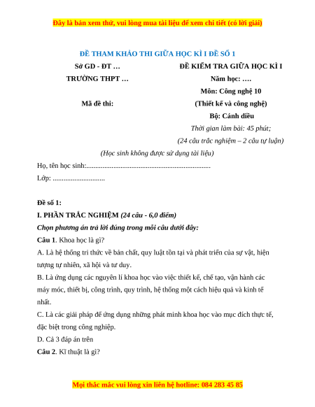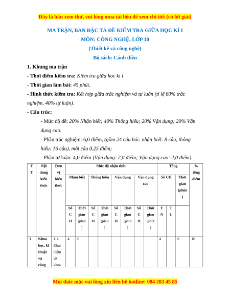 - Tailieugiaovien.com.vn giới thiệu bộ đề giữa kì 1 gồm đầy đủ ma trận và lời giải chi tiết môn Công ngệ Thiết kế 10 Cánh diều mới nhất năm 2023 - 2024 nhằm giúp Giáo viên có thêm tài liệu tham khảo ra đề thi Công nghệ lớp 10.