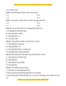 Câu 9. Trong lĩnh vực điện, điện tử có mấy công nghệ phổ biến? A. 3 B. 4 C. 5 D. 6