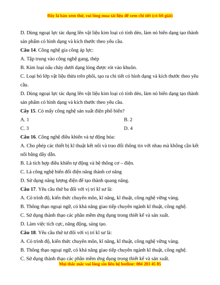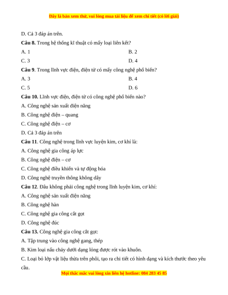 Đây là bản xem thử, vui lòng mua tài liệu để xem chi tiết (có lời giải)