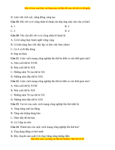 Câu 21. Cuộc cách mạng công nghiệp lần thứ ba diễn ra vào thời gian nào?