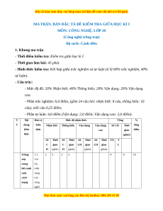 MA TRẬN, BẢN ĐẶC TẢ ĐỀ KIỂM TRA GIỮA HỌC KÌ I