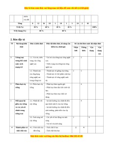 nhiêu của đất Tổng 8 12 16 18 1 10 1 5 24 2 45 Tỉ lệ (%) 20 % 40 % 20 % 20 % 100% Tỉ lệ chung (%) 60 % 40 % 2. Bản đặc tả TT Nội dung kiến
