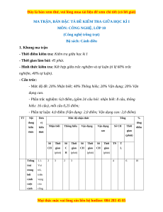 MA TRẬN, BẢN ĐẶC TẢ ĐỀ KIỂM TRA GIỮA HỌC KÌ I