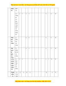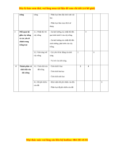 Mức độ nhận thức Tổng % dung vị tổng kiến kiến Nhận biết Thông hiểu Vận dụng Vận dụng Số CH Thời điểm thức thức cao gian (phút) Số Thời Số Thời Số Thời Số Thời TN T CH gian C gian CH gian CH gian L (phút) H (phút) (phút) (phút) Trồng 1.1. 2 3 2 3 4 6 10 trọt Vai trong trò, bối triển cảnh vọng cuộc của cách công