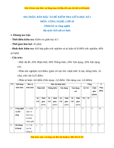 MA TRẬN, BẢN ĐẶC TẢ ĐỀ KIỂM TRA GIỮA HỌC KÌ I