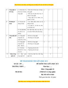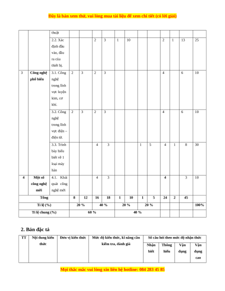 công nghệ quát công mới nghệ mới Tổng 8 12 16 18 1 10 1 5 24 2 45 Tỉ lệ (%) 20 % 40 % 20 % 20 % 100% Tỉ lệ chung (%) 60 % 40 % 2. Bản đặc tả TT Nội dung kiến