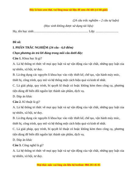 - Mối quan hệ giữa khoa học, kĩ thuật và công nghệ.