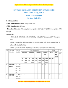 ĐỀ KIỂM TRA GIỮA HỌC KÌ II TRƯỜNG THPT … Năm học: …. Môn: Công nghệ 10 Mã đề thi: