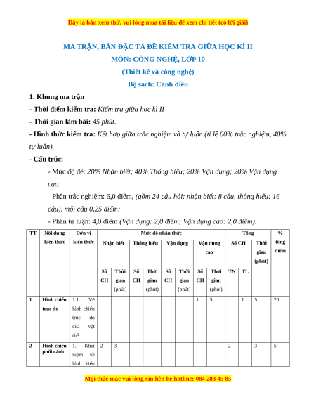 - Tailieugiaovien.com.vn giới thiệu bộ đề giữa kì 2 gồm đầy đủ ma trận và lời giải chi tiết môn Công ngệ Thiết kế 10 Cánh diều mới nhất năm 2023 - 2024 nhằm giúp Giáo viên có thêm tài liệu tham khảo ra đề thi Công nghệ lớp 10.