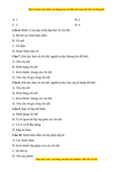 Câu 5. Lập bản vẽ chi tiết gồm mấy bước?