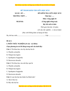 ĐỀ KIỂM TRA GIỮA HỌC KÌ II TRƯỜNG THPT … Năm học: …. Môn: Công nghệ 10 Mã đề thi: