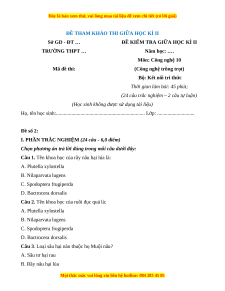 - Tailieugiaovien.com.vn giới thiệu bộ đề giữa kì 2 gồm đầy đủ ma trận và lời giải chi tiết môn Công ngệ trồng trọt 10 Kết nối tri thức mới nhất năm 2023 - 2024 nhằm giúp Giáo viên có thêm tài liệu tham khảo ra đề thi Công nghệ lớp 10.