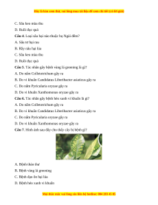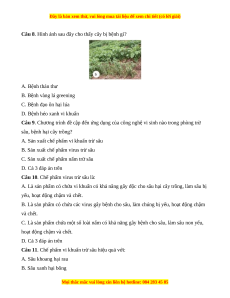 Câu 11. Chế phẩm vi khuẩn trừ sâu hiệu quả với: A. Sâu khoang hại rau B. Sâu xanh hại bông