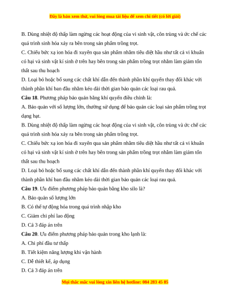 Câu 19. Ưu điểm phương pháp bảo quản bằng kho silo là?
