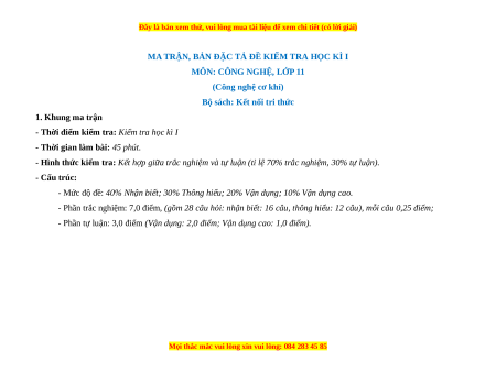- Tailieugiaovien.com.vn giới thiệu bộ đề cuối kì 1 gồm đầy đủ ma trận và lời giải chi tiết môn Công nghệ cơ khí 11 Kết nối tri thức mới nhất năm 2023 nhằm giúp Giáo viên có thêm tài liệu tham khảo ra đề thi Công nghệ lớp 11.