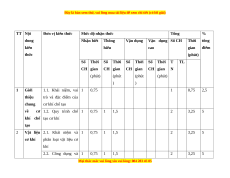 Số Thời Số Thời Số Thời Số Thời T TL CH gian CH gian CH gian CH gian N (phút) (phút (phút (phút) ) ) 1 Giới 1.1. Khái niệm, vai 1 0,75 1 0,75 2,5 thiệu trò và đặc điểm của chung cơ khí chế tạo