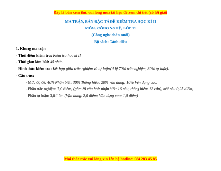 - Tailieugiaovien.com.vn giới thiệu bộ đề cuối kì 2 gồm đầy đủ ma trận và lời giải chi tiết môn Công nghệ chăn nuôi 11 Cánh diều mới nhất năm 2023 nhằm giúp Giáo viên có thêm tài liệu tham khảo ra đề thi Công nghệ lớp 11.